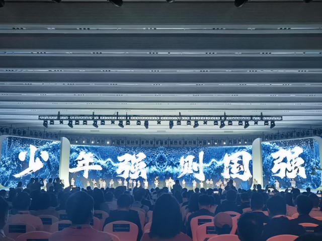 7月3日,2024两岸青年峰会主论坛上,青少年演员在表演。中青报·中青网记者 尹希宁/摄