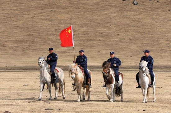 科右前旗“守望草原巡防队”队员骑马巡边。白海顺/摄
