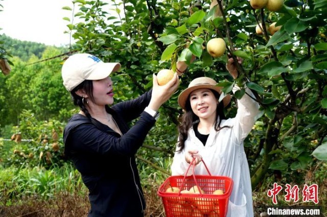“我前几天在老家江西就听说这边的梨很好吃,我就特地赶过来采摘。哇,没想到这梨真的非常好吃,又脆又甜。”江西游客徐女士说。