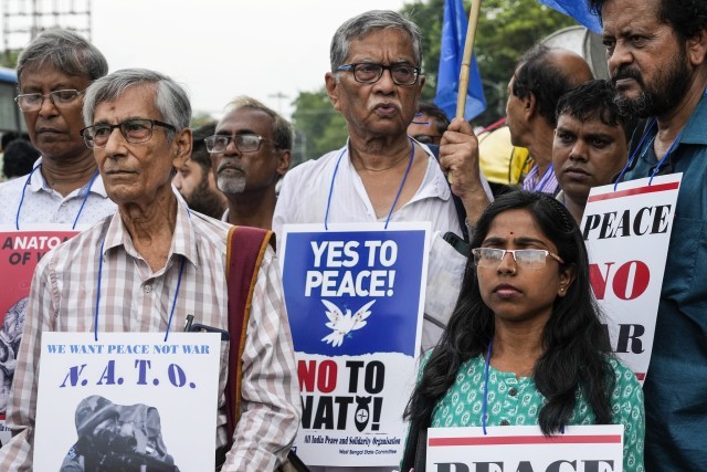 7月14日,印度加尔各答,民众集会抗议北约在亚太地区的扩张。图片来源 视觉中国