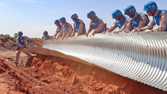 维和工兵分队领导介绍,受领机场道路修复维护任务后,他们先后克服了天气炎热高温、作业条件较差、取土用材不便等难题,安全圆满完成了工程任务,有效彰显了中国态度和大国担当。