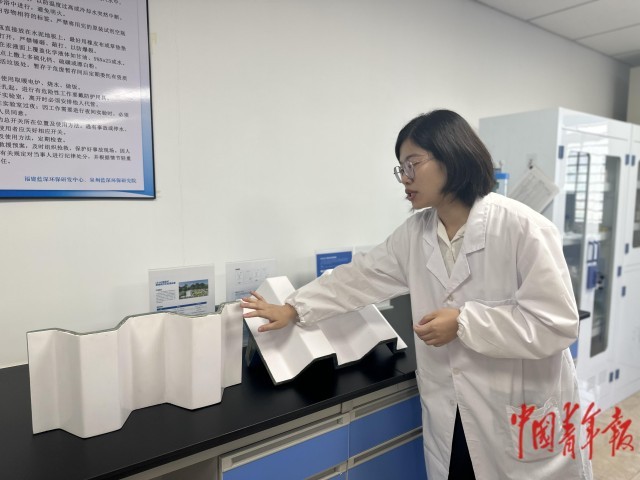 徐佳燕是蓝深公司环保研究院技术研发部副总经理,她今年30岁,2020年从福州大学环境工程专业毕业后,选择来到蓝深工作。徐佳燕日常的工作就是设计研发污水处理设备,她最近参与研发了装配式玻璃钢污水处理设备,这款设备可以在现场直接组装,解决了整件设备运输难的问题,“玻璃钢材质是一种耐紫外线材质,经过实验在户外使用十年以上,不会对外观造成损伤。”
