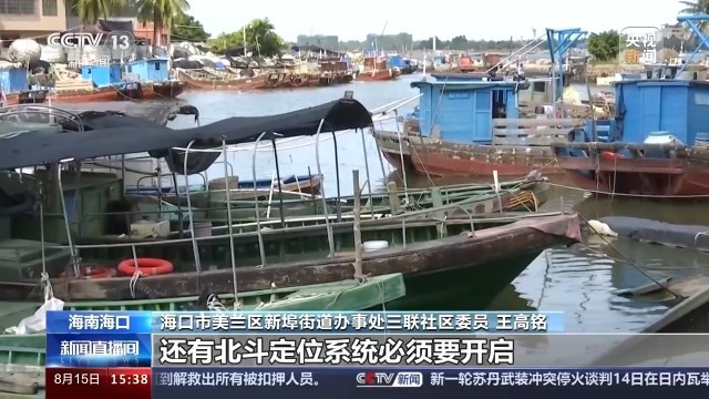 海口市美兰区新埠街道办事处三联社区委员 王高铭:做好安全设施的准备,救生圈、救生衣数量要备齐,船上还要备齐灭火器,北斗定位系统也要开启,夜晚时导航灯也必须开启。
