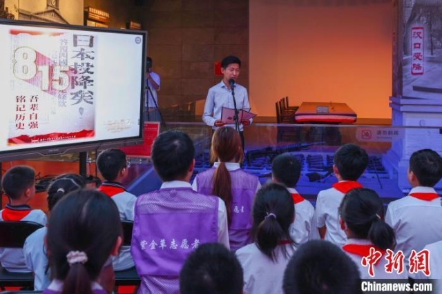 8月15日,工作人员向青少年讲解抗战历史。中新社记者 泱波 摄