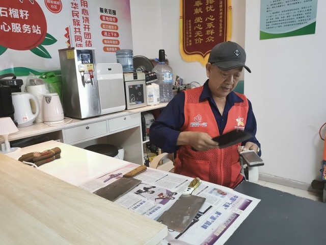 8月8日一大早,74岁的智福德大爷就来到社区”石榴籽爱心服务站“,开始一天的工作。今年8月以来,短短几天,他已为社区居民磨了50多把菜刀,经过他打磨的刀具光滑锃亮。