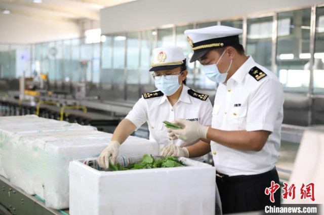 图为海关工作人员对出口冷凉蔬菜进行检验检疫。 西宁海关 供图
