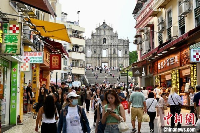 澳门特区政府统计暨普查局发布消息称,2024年首7个月的入境旅客共约1974.1万人次,按年上升37%。图为旅客在澳门大三巴牌坊一带游玩资料图。 中新网记者 李志华 摄