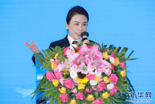 玉喃溜在分享普法经验和感悟(摄于8月22日)。新华网发(供图)