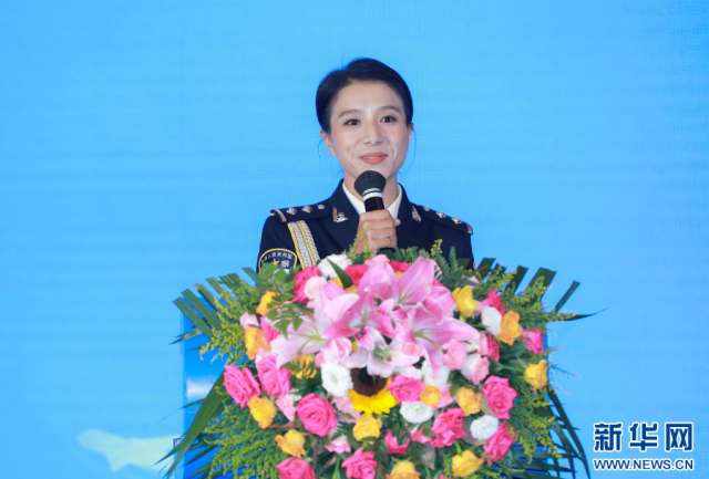 李虹霏在分享打造“茶城森警”新媒体账号的经验做法(摄于8月22日)。新华网发(供图)