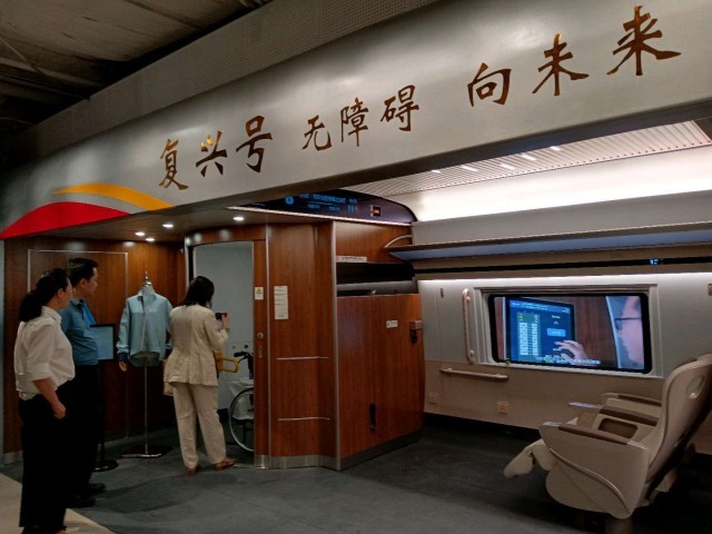 复兴号新一代高铁车厢1:1实景模型。中青报·中青网记者吴晓东摄