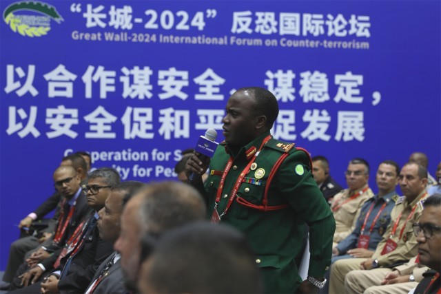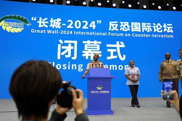 闭幕式上,喀麦隆国防武官阿翁南·让·雅克代表外方嘉宾表达诚挚谢意。他表示,恐怖主义威胁全人类,危害深远,各国应携起手来,积极防范恐怖主义威胁。此次论坛为国际反恐斗争提供了非常宝贵的学习研讨机会,让大家受益良多,希望各国继续努力,共同遏制恐怖主义威胁。