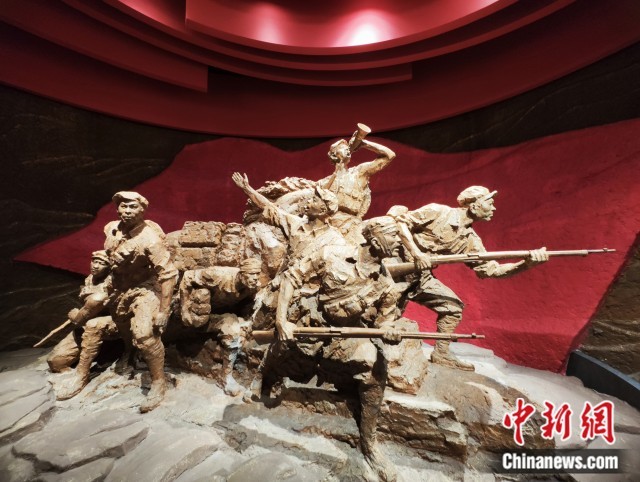 宁化县长征精神教育基地内,一组红军战士的雕塑。刘越 摄