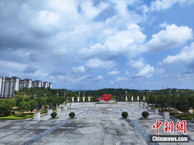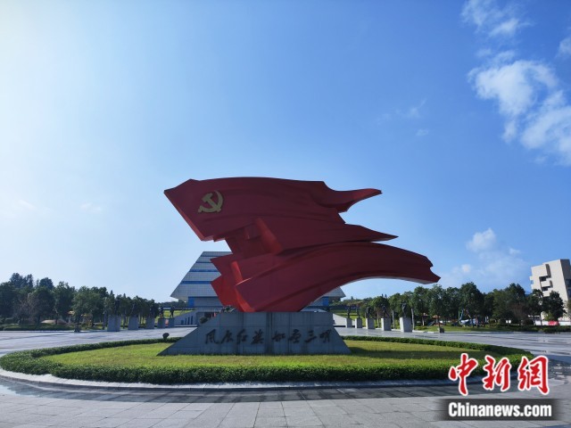宁化县长征精神教育基地外,一则“红旗”主题雕塑引人注目。刘越 摄