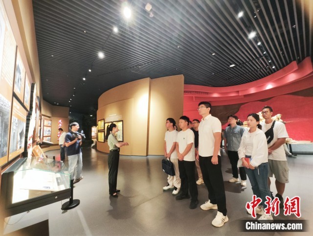 宁化县长征精神教育基地内,讲解员向采访调研团讲述历史。刘越 摄