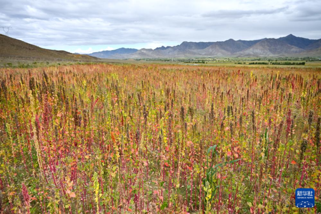 这是在西藏日喀则市萨迦县扯休乡拍摄的高原藜麦种植基地内的藜麦田(9月4日摄)。新华社记者 孙瑞博 摄