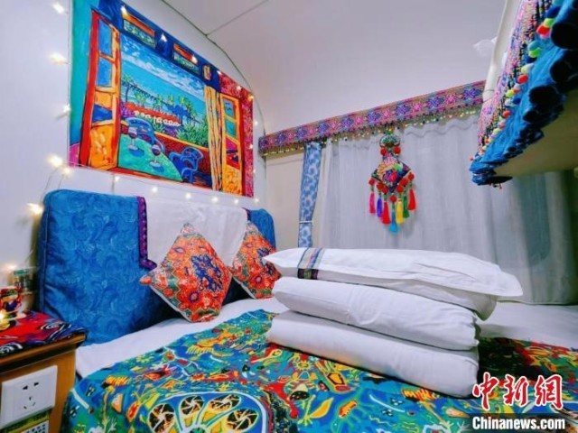 图为列车VIP包房布置充满民族风情。中国铁路昆明局集团有限公司 供图