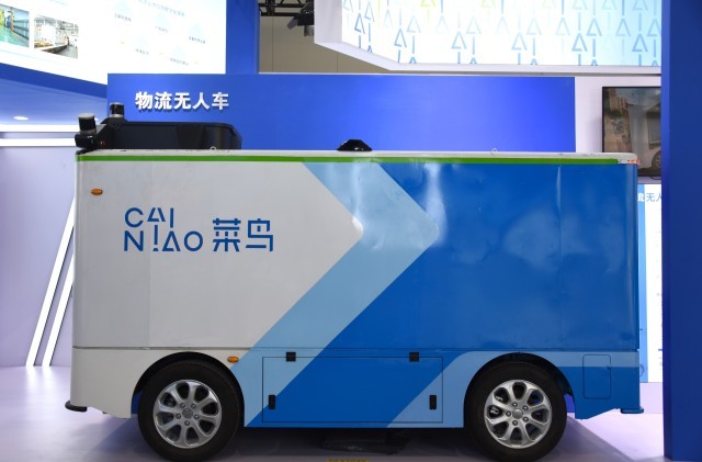 菜鸟展示的最新款L4级物流无人车,主要负责快递网点至末端站点间的运输任务,可有效解决派件区域距离网点较远、需往返多次派件的运力和成本问题。实习生 张轩/摄