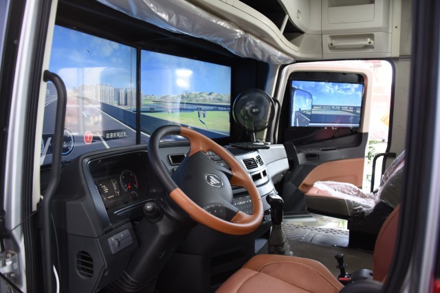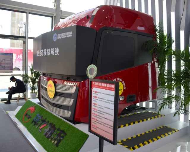 图为祥龙物流集团一比一还原的卡车头外部与内部展示。实习生 张轩/摄