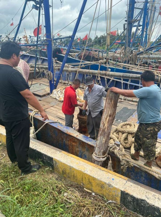 渔船进港后,最关键的一步是固定缆绳。“这次的台风比较厉害,因此我们给归港船只上了多重保险。”张敏说,每十几艘船就能形成一个比较稳定的整体,抗风浪的能力会明显提高。