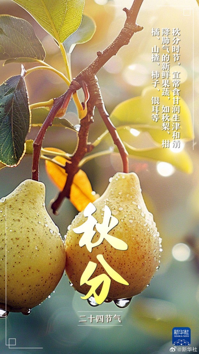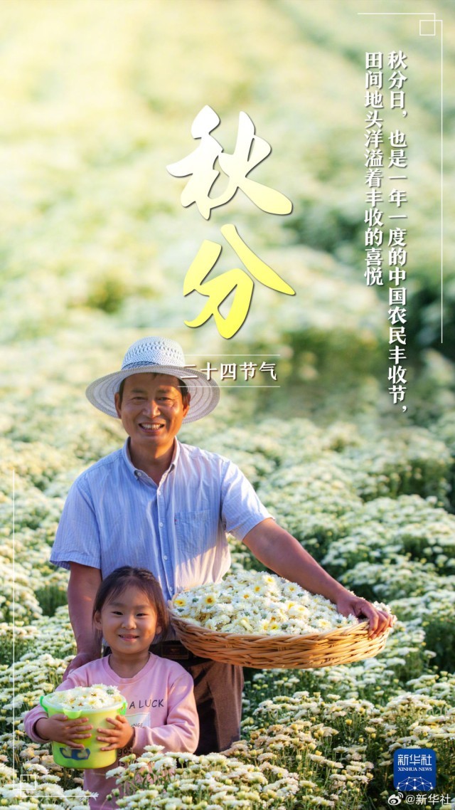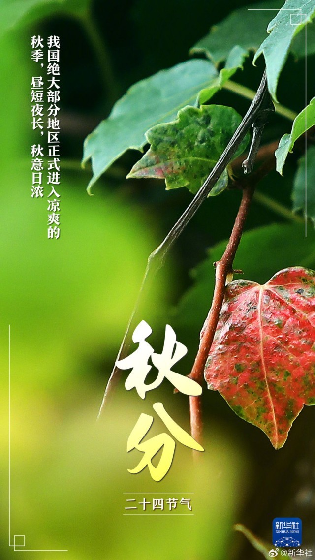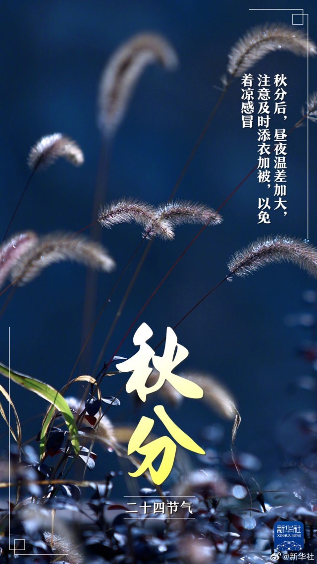 【今日秋分,共庆丰收】①北京时间9月22日20时43分迎秋分;②秋分阳光几乎直射赤道,昼夜等长;③秋分后昼夜温差加大,记得及时添衣加被;④秋分也是农民丰收节。让我们在瓜果飘香、硕果累累的喜悦中,一起迎接收获的金秋!