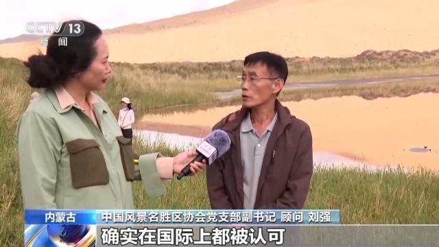 中国风景名胜区协会党支部副书记、顾问 刘强:根据一些国际资料发现这个地方极具遗产价值,后来我们就找到当时写这个资料的IUCN(世界自然保护联盟)一个国际专家,同时也是牛津大学的前副校长高迪教授,咨询了这件事情以后,发现巴丹吉林确实在国际上都被认可。