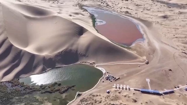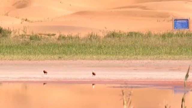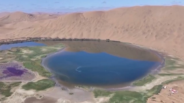 陕西师范大学党委常委、副校长,中国科学院研究员、博士生导师 董治宝:巴丹吉林的沙漠,首先是高大沙山,还有沙山之间的湖泊,再就是湖泊的这些颜色变化更增加了湖泊的美感,也给巴丹吉林沙漠申遗加分。