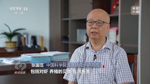 中国科学院海洋研究所研究员 张国范:“比如容量的控制,包括溯源技术、净化等工业化措施的加持。我们过去主要在黄海渤海进行养殖,现在扩展到福建东海以及广东、广西、海南南海,每年养殖面积达到100万亩,产量100万吨,产值100个亿。”