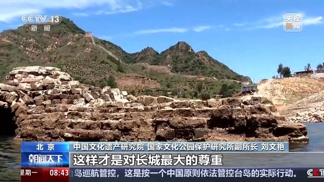 中国文化遗产研究院、国家文化公园保护研究所副所长 刘文艳:所以它的修缮秉承最小干预,就是我尽量不改变长城现在的状态,我尽量不让长城再发生新的风险就可以了。因为长城的修建理念就是因地制宜,在不同的地方就是不同的材质。如果说西部地区的夯土长城它留存至今,如果它还像八达岭这样巍峨,它就不符合科学规律了,它自然消耗就像人会老去一个道理,我们想尊重它原始的面貌,所以我们认为这样才是对长城最大的尊重,对文化遗产最大的尊重。
