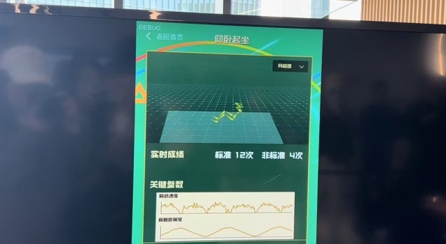 在立定跳远时,孩子在空中的慢动作姿态、脚落地瞬间脚后跟与起跳线的距离立刻就能测量出来,孩子在考完后确认,如果出现问题再重新考一遍,现场保留下数据,整个考试过程非常顺滑。