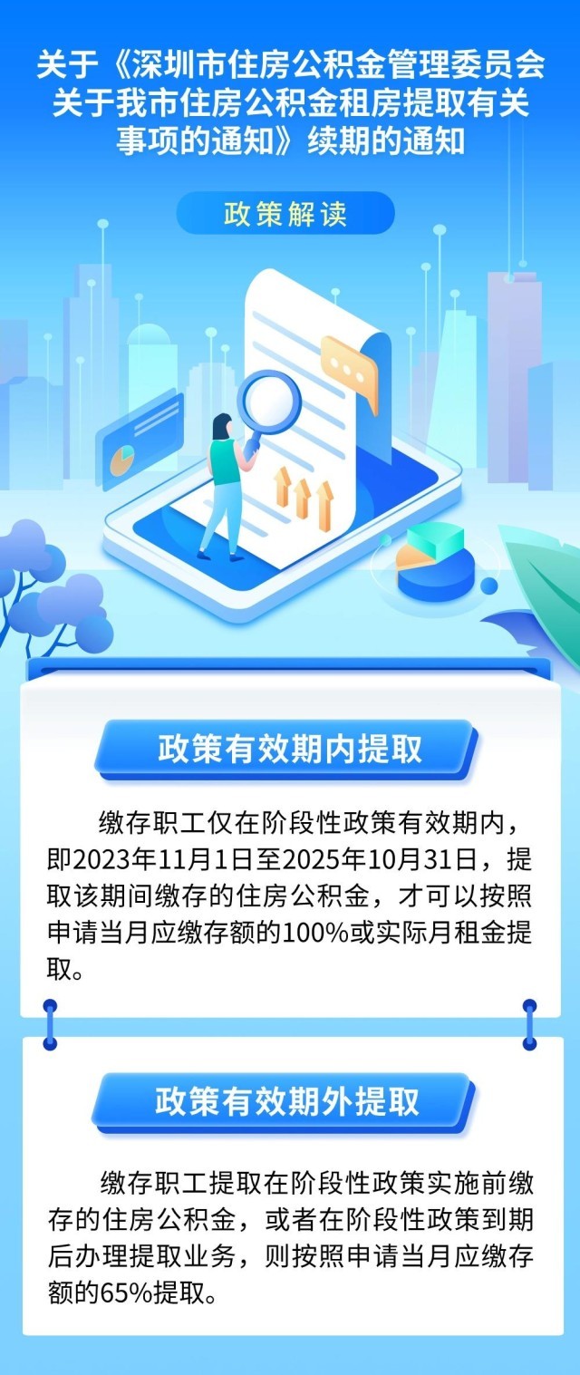 据深圳市住房公积金管理中心消息,为继续支持缴存职工提取住房公积金用于租赁住房,住房公积金租房提取阶段性政策将续期一年,有效期延长至2025年10月31日。