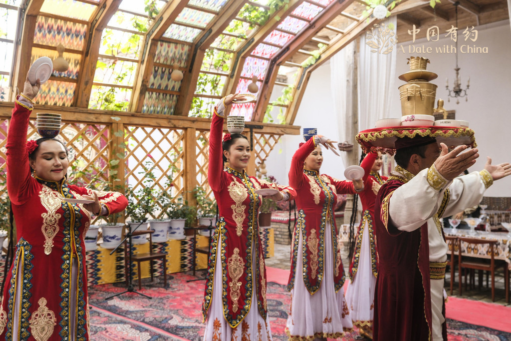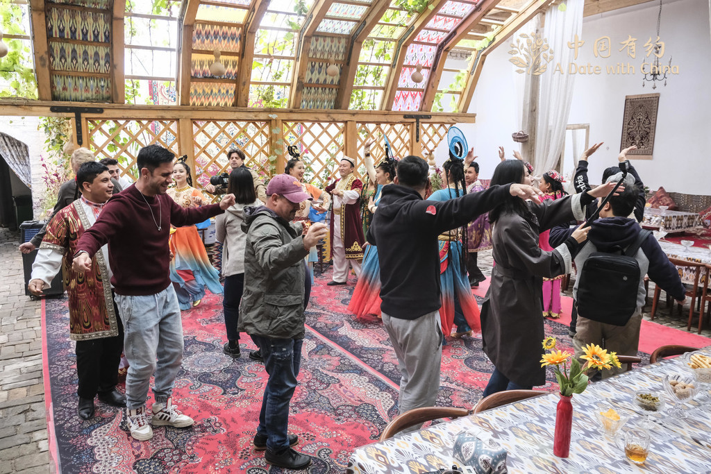 “中国有约·相约新疆”2024年国际媒体采访团与舞者们进行互动