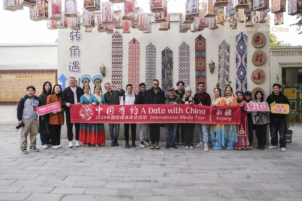 “中国有约·相约新疆”2024年国际媒体采访团在龟兹小巷合影留念