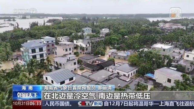 海南省气象台首席预报员 郝丽清:往年的话,秋季也是有很多这种暴雨。在北边是冷空气,南边是热带低压或者热带台风的残涡,这次也是典型的秋季暴雨形势。但是这一次“潭美”台风登陆减弱之后,又过了一天才下这种暴雨,前后两个过程的雨量、影响都叠加了。再加上天文潮这类非大气的因素,造成了比较大的影响。