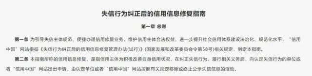 “信用中国”明确指出了“信息修复”的概念是指企业纠正失信行为后,移除或终止公示失信信息。