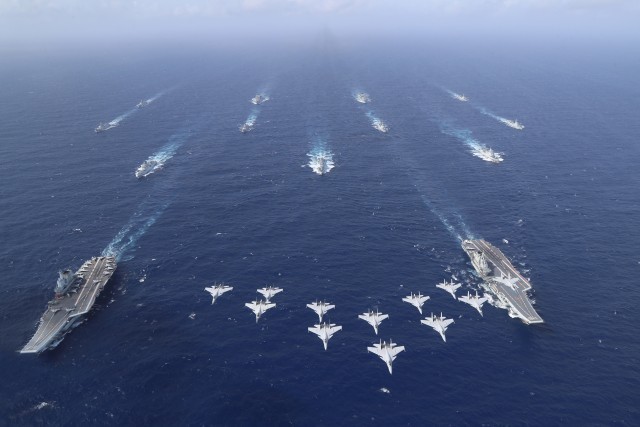 辽宁舰、山东舰编队首次开展双航母编队演练