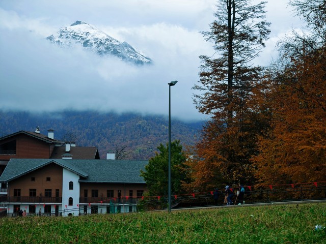 11月4日,俄罗斯索契,第21届瓦尔代国际辩论俱乐部年会在索契山中的“波利亚娜1389”酒店开幕。图为会议举办地的雪山美景。中青报·中青网记者 赵祺/摄