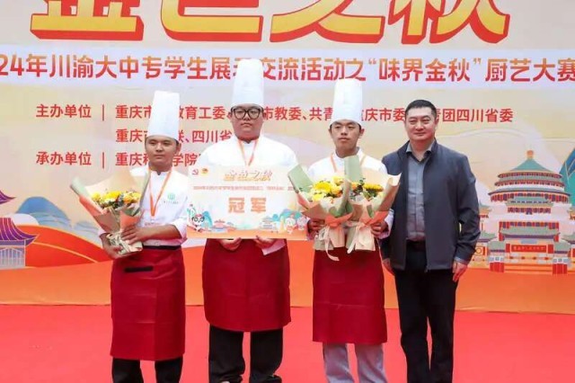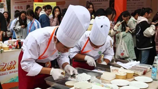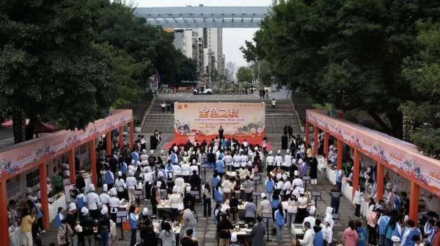 据中国青年报客户端11月10日报道,11月9日,2024年“金色之秋”川渝大中专学生展示交流活动之“味界金秋”厨艺大赛举行,20支来自四川和重庆高校的团队比拼厨艺。
