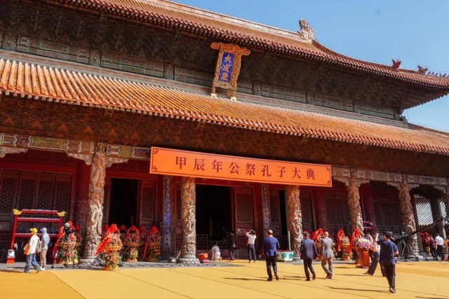 在2024甲辰年公祭孔子大典上,参祭人员参观曲阜孔庙。新华社记者 朱峥 摄