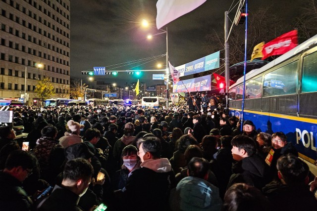 与此同时,韩国国会大楼被封,禁止议员出入,只允许身份得到确认的部分人员出入。韩联社报道称,紧急戒严令发布不久后,部署在国会的警力开始阻止人员出入,双方一度发生争吵。