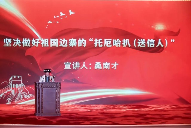 ▲12月27日下午,桑南才在全国民族团结进步模范事迹报告会上汇报。(图片来源:中国民族报“道中华”平台)