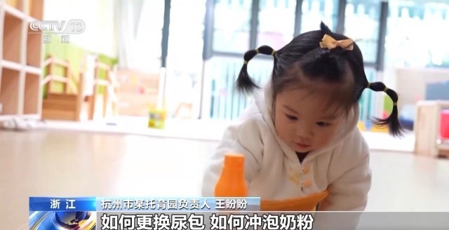 杭州市某托育园负责人 王盼盼:他没有自我保护意识,需要成人去关注以及引导好,责任也是比较重大。包括日常照护,如何更换尿包、如何冲泡奶粉这些。