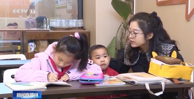 社区居民李女士有两个孩子,女儿上小学,儿子才两岁。她平时要上班,丈夫在外地工作。她把两岁的儿子送到小区里的托育园。更为方便的是,托育机构还办起了托管班,上小学的女儿放学后还可以来这里吃饭、写作业。李女士下班后,来托育园接两个孩子一起回家。