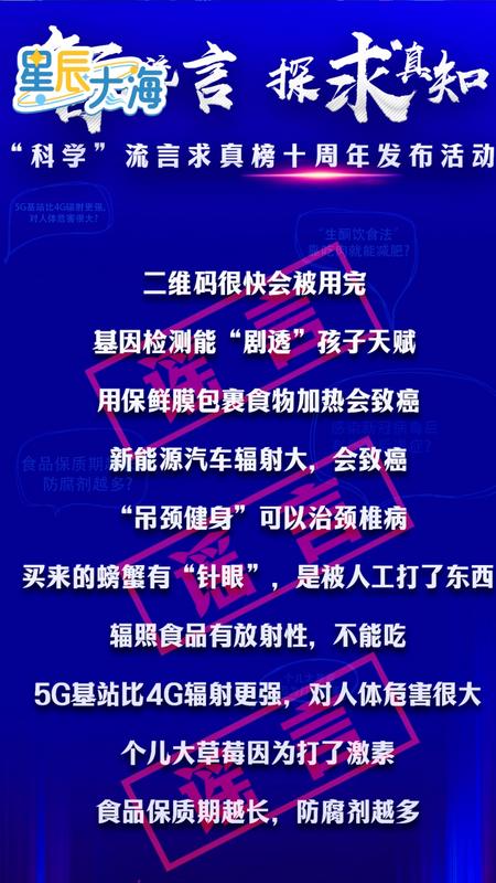 近日,“智止流言 探求真知——‘科学’流言求真榜十周年发布活动”在京举行,多位专家为公众梳理并“粉碎”过去10年在网络上广为传播的十大“科学”流言,帮助公众明辨是非。