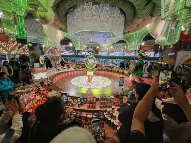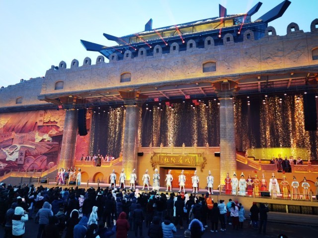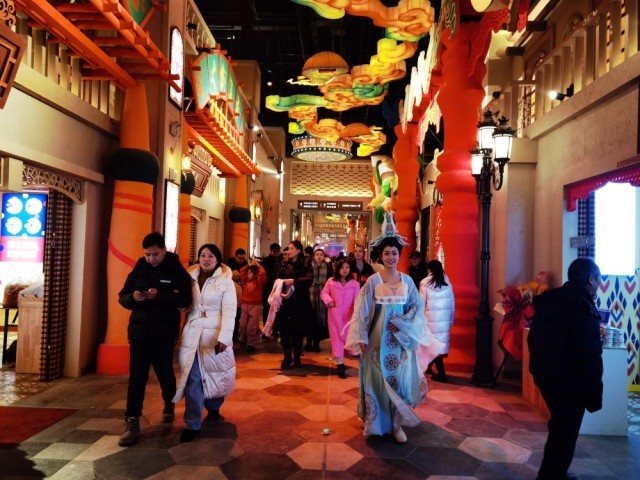 在乌鲁木齐市网红打卡地天山明月城南侧,“丝路有戏”园区经过1年多施工、装修后,已于2025年元旦前夕向游客开放。新疆创博文化旅游投资有限公司总经理张磊介绍:“这里是原乌鲁木齐市馕文化产业园,我们对原来宽敞的食品加工厂房做了改造,打造沉浸式互动演艺街区,将带动就业近千人。在这里,游客可以体验‘丝路风华·入梦驼铃’‘大汉荣耀·守城之战’‘楼兰秘境·消失之谜’等8个独立主题演艺场景。”