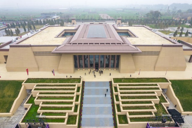 陶寺遗址博物馆外景(2024年11月12日摄,无人机照片)。