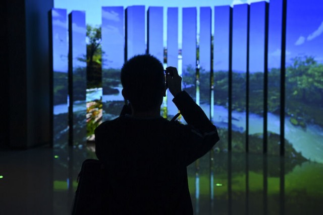进入沉浸式数字展厅,陶寺城的生活画卷在游客张泽豪身边展开:被城墙环绕的大城在晨曦中醒来,宫城里“王”在处理政务,乐师们敲鼓击磬,艺人在作坊区绘制陶器,农民在田地里迎来粟黍丰收……“有种穿越感,在轻松氛围中就对陶寺文明有了全面了解。”他说。