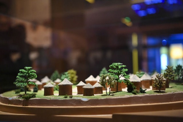 这是在陶寺遗址博物馆内展示的一处都城复原景象(2024年11月12日摄)。