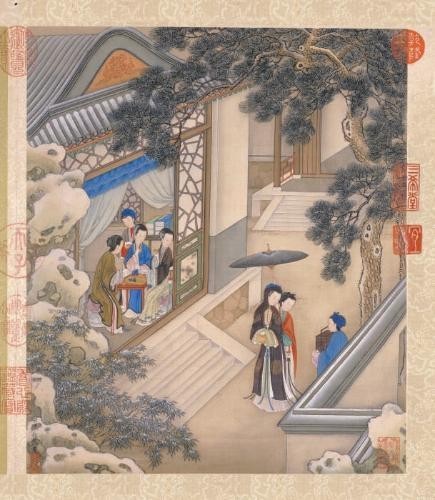 清 陈枚《月曼清游图册》之十二月“踏雪寻诗”