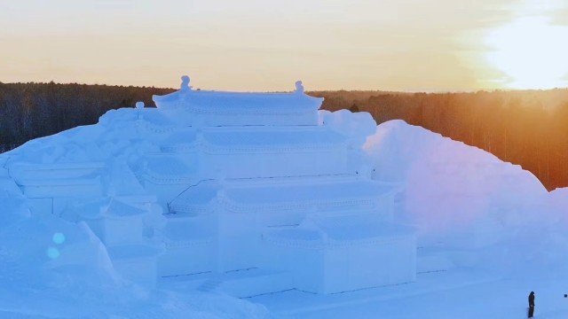 近日,长白山雪雕版云顶天宫落成。云顶天宫占地面积1万余平方米,主体高20米、宽60米,用造雪量达8万立方米。吸引了众多游客前来打卡拍照。(中青报·中青网记者 王培莲 通讯员: 邵梓轩 视频提供:长白山旅游股份有限公司)