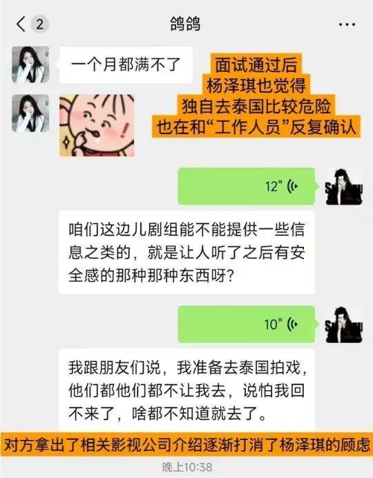 据杨泽琪表姐在社交平台的表述,2024年12月8日,杨泽琪在微信通告群里看到剧组拍摄通告,并添加通告上的微信参与报名,也通过了视频面试试戏。